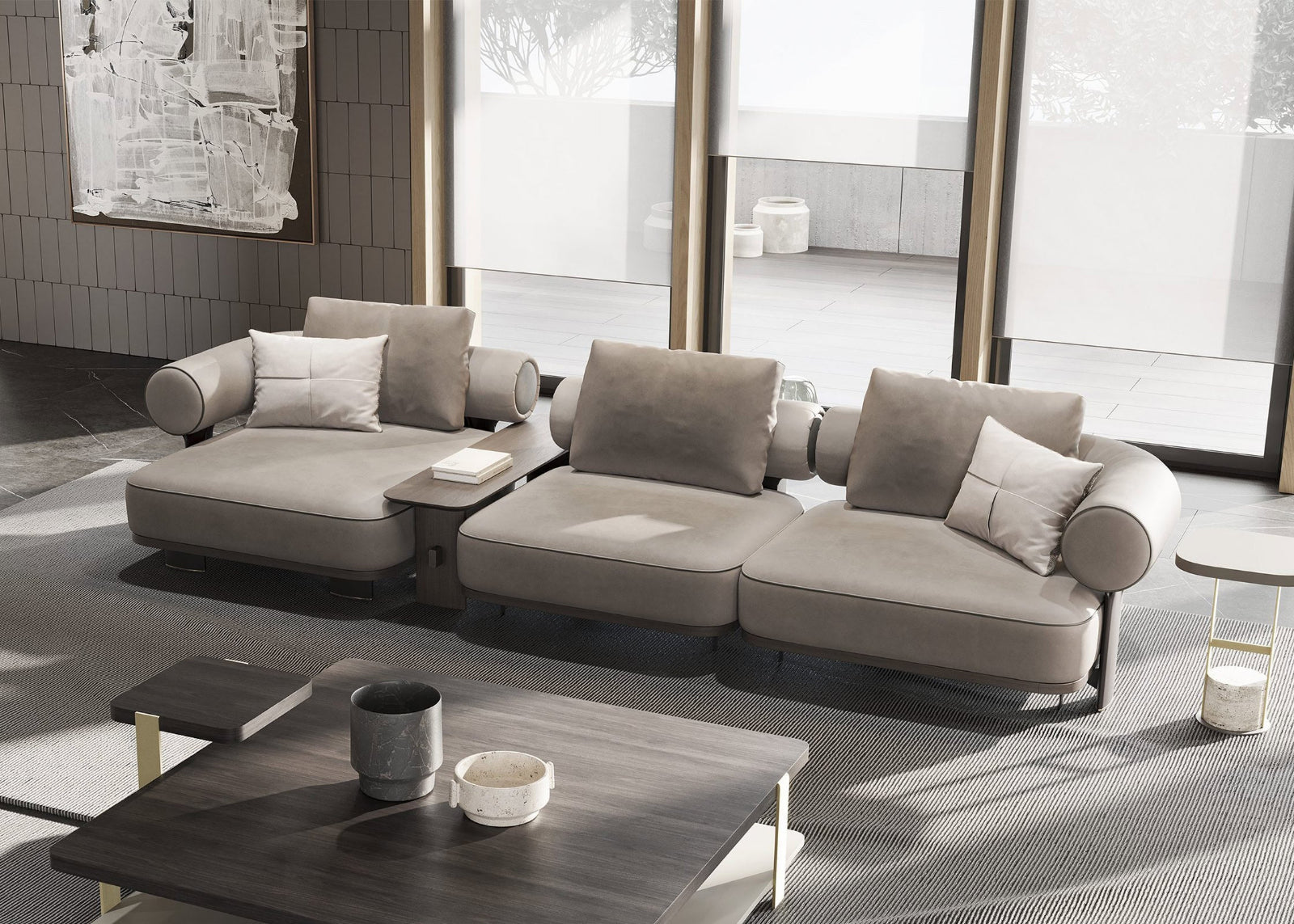 The Kyoto Sofa is all about refined harmony. Its piping, crafted from the same luxurious fabric as the sofa itself, brings a subtle, sculptural definition — clean, cohesive, and timeless.
