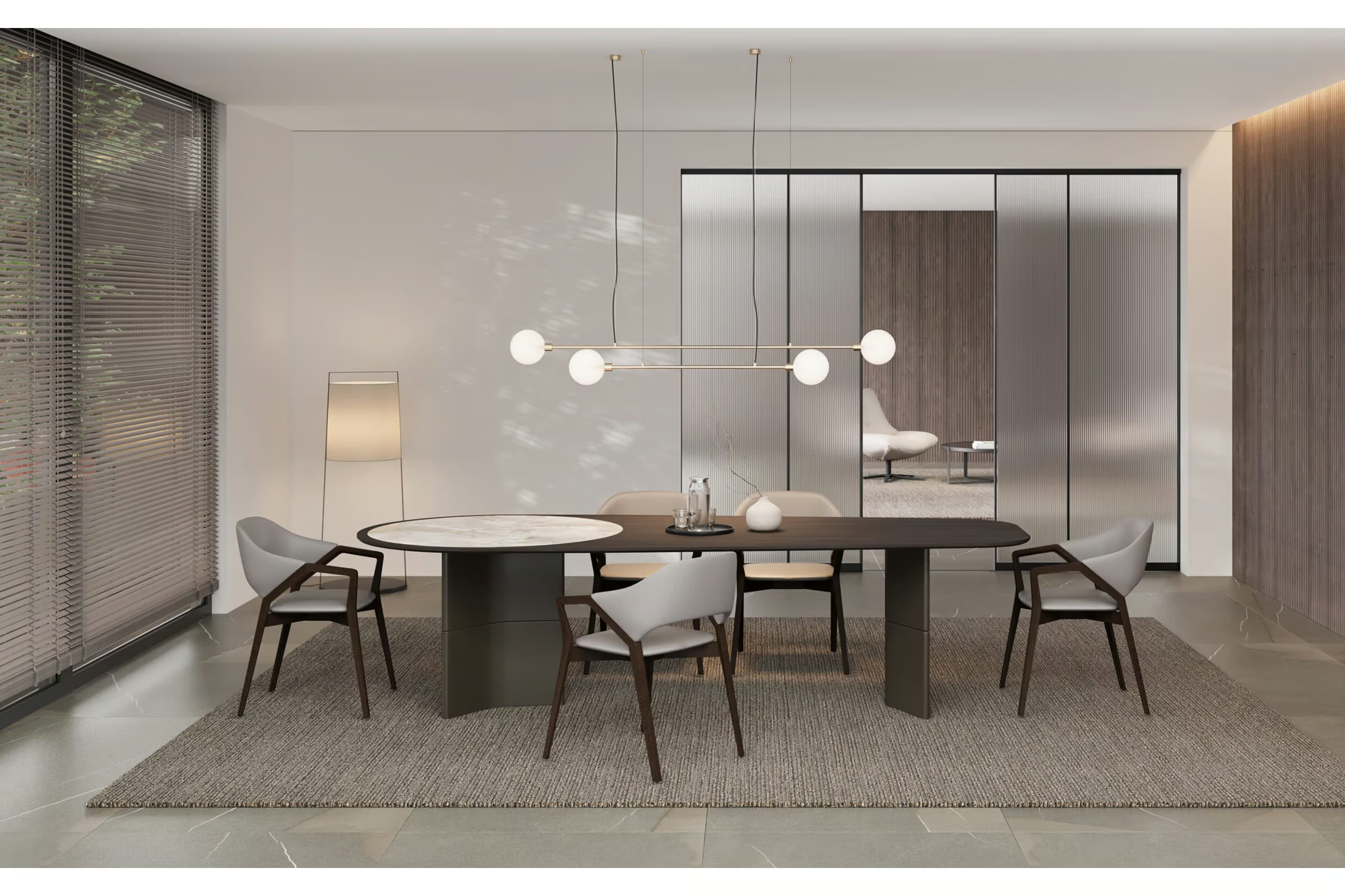 A modern yet versatile look that complements any dining room style, from contemporary to classic.