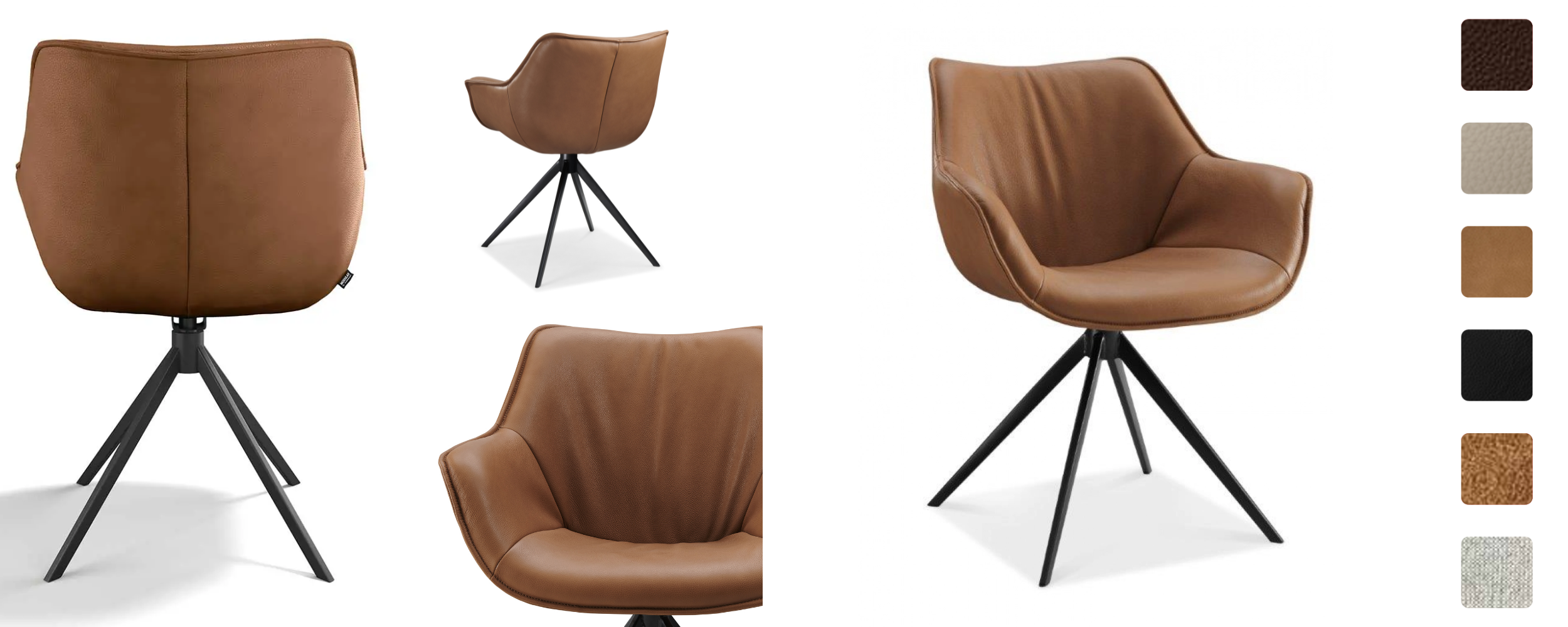 The 360-degree swivel function allows for effortless movement, enhancing flexibility and convenience. Supported by a sturdy black metal base, the chair offers excellent stability while adding a modern touch to your interior. Upholstered in high-quality Sneak fabric, the Padua chair exudes a refined and stylish look.